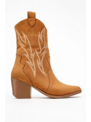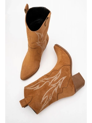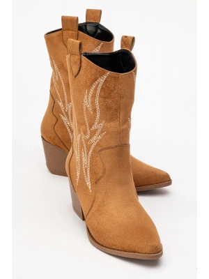 Carla Kadın Taba Süet Nakışlı Dallas Western Kovboy Bot