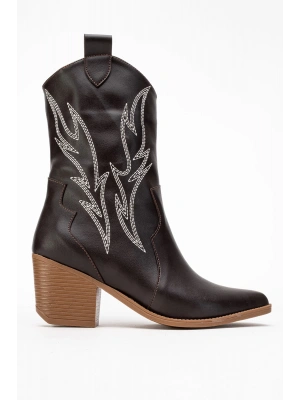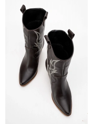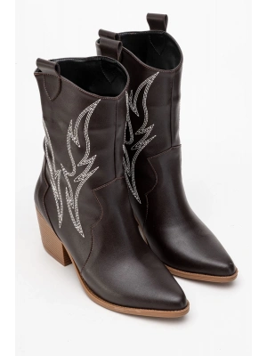 Carla Kadın Acı Kahve Cilt Nakışlı Dallas Western Kovboy Bot