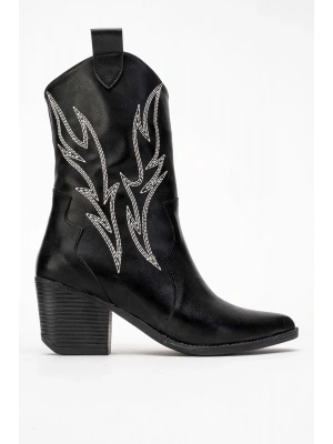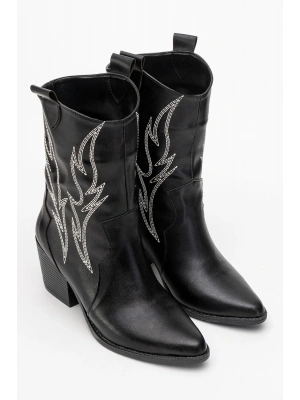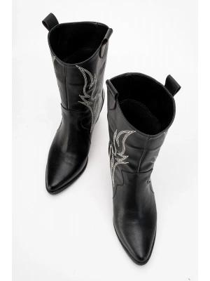 Carla Kadın Siyah Cilt Nakışlı Dallas Western Kovboy Bot