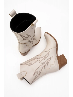 Carla Kadın Bej Cilt Nakışlı Dallas Western Kovboy Bot
