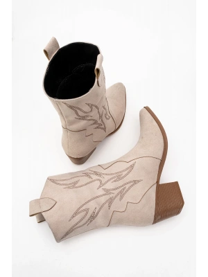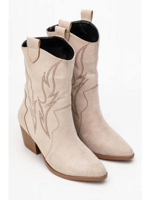 Carla Kadın Bej Süet Nakışlı Dallas Western Kovboy Bot