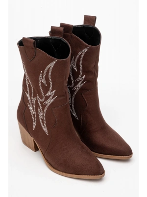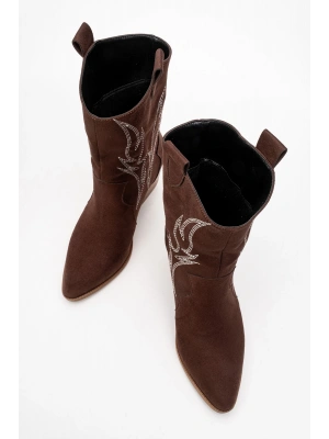 Carla Kadın Acı Kahve Süet Nakışlı Dallas Western Kovboy Bot