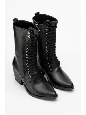 Maria Kadın Siyah Cilt Bağcıklı Postal Western Dallas Bot