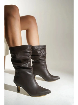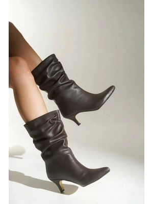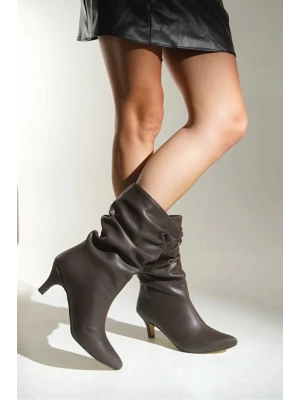 Greek Kadın Acı Kahve Cilt Körüklü Bot