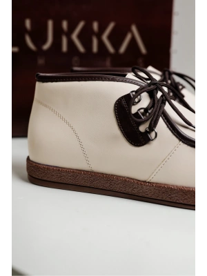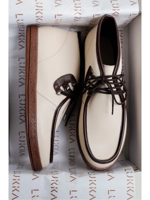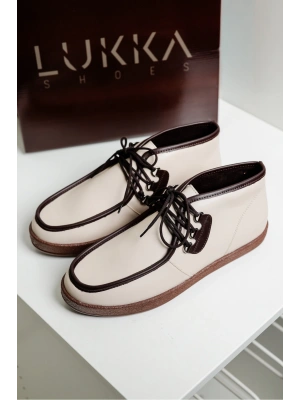 Amy Erkek Bej Suni Deri Garnili Bağcıklı Golf Ayakkabı Bot