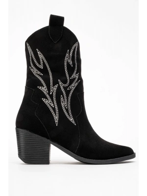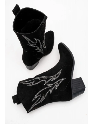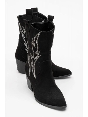 Carla Kadın Siyah Süet Nakışlı Dallas Western Kovboy Bot