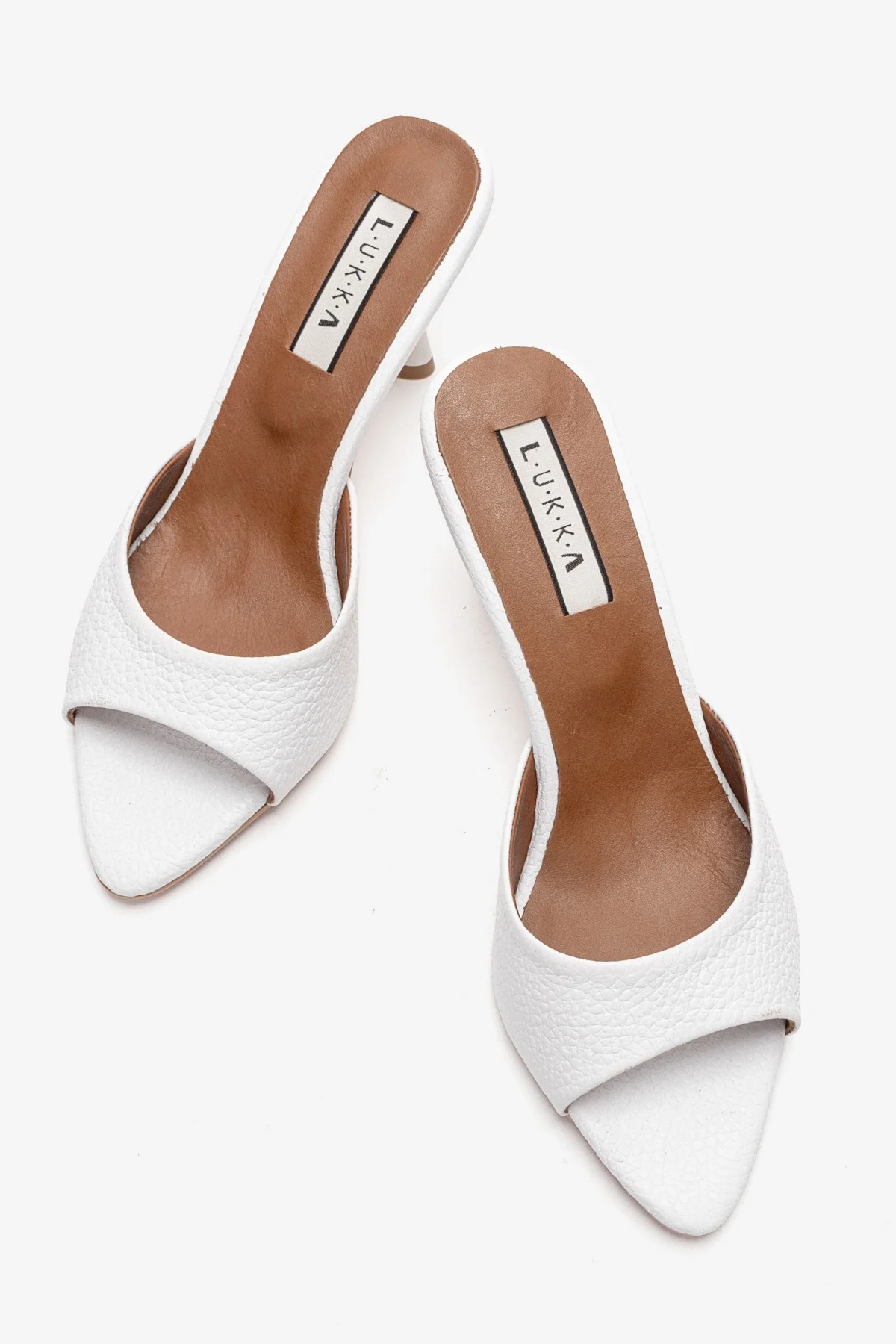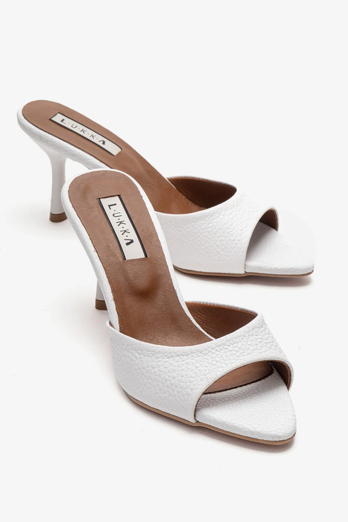 Hakiki Deri Mila Kadın Beyaz Çapraz Topuklu Terlik