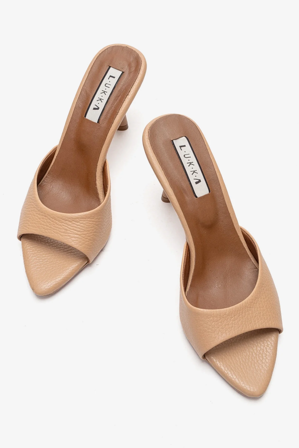 Hakiki Deri Mila Kadın Nude Çapraz Topuklu Terlik