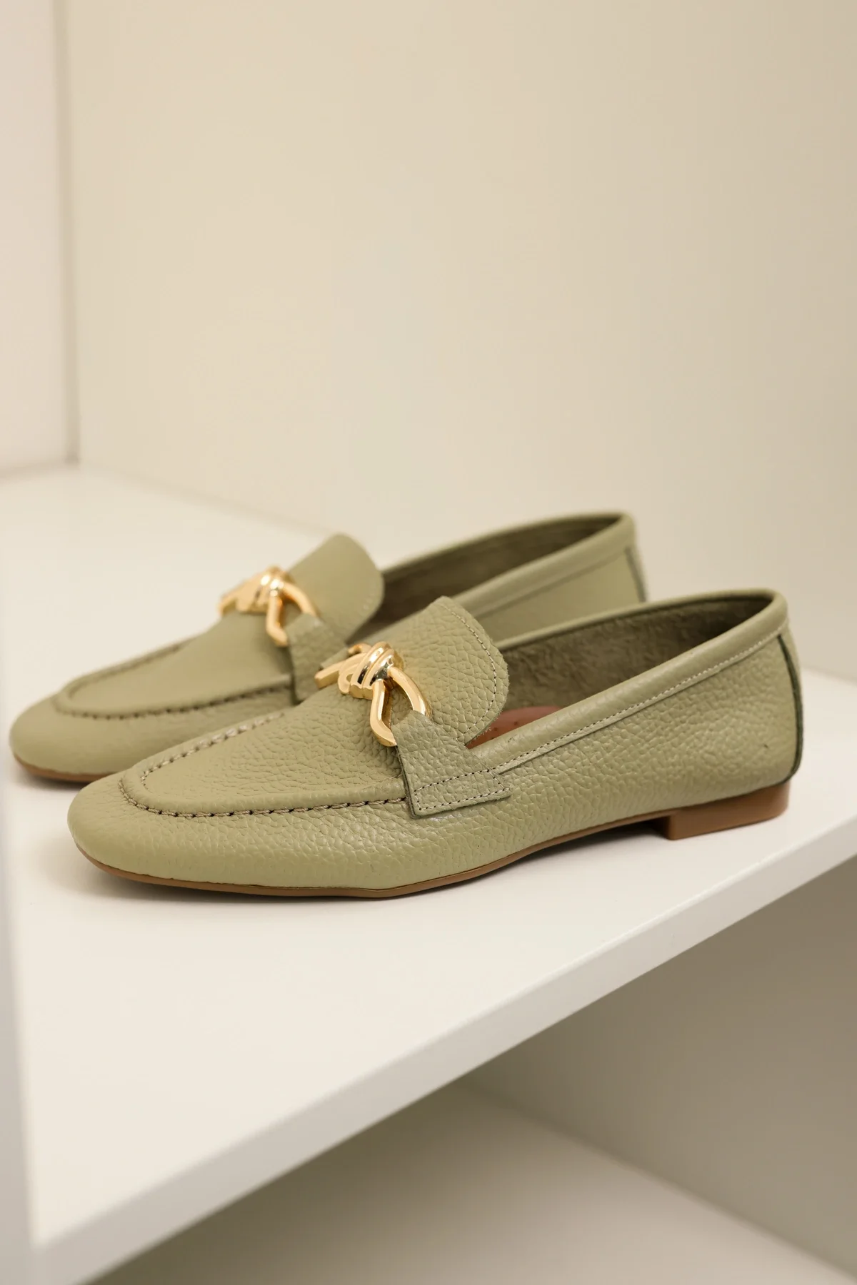 HAKİKİ DERİ CAMERON KADIN AVOKADO YEŞİL METAL TOKALI LOAFER BABET