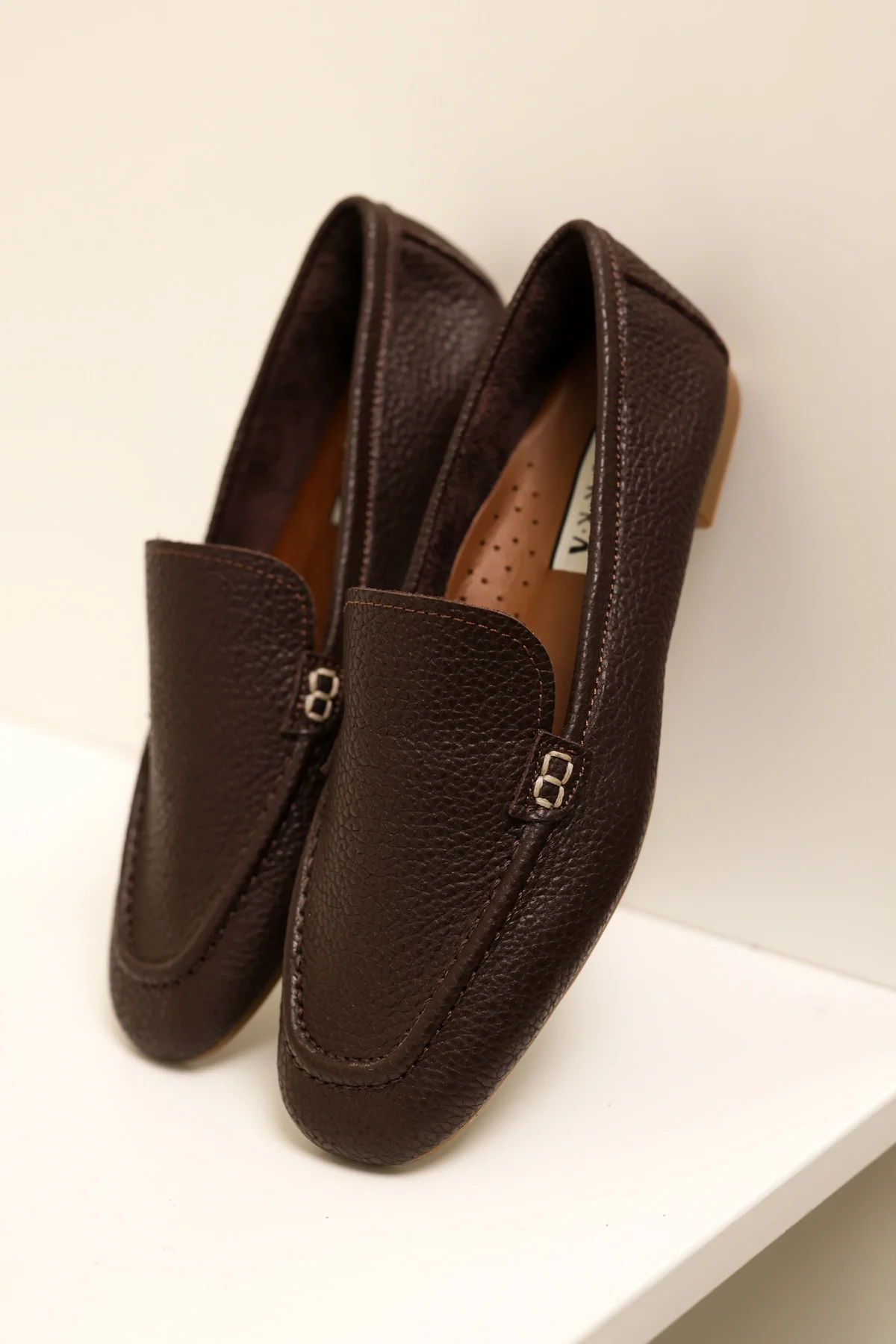 Hakiki Deri Kadın Alvin Acı Kahve El yapımı Babet