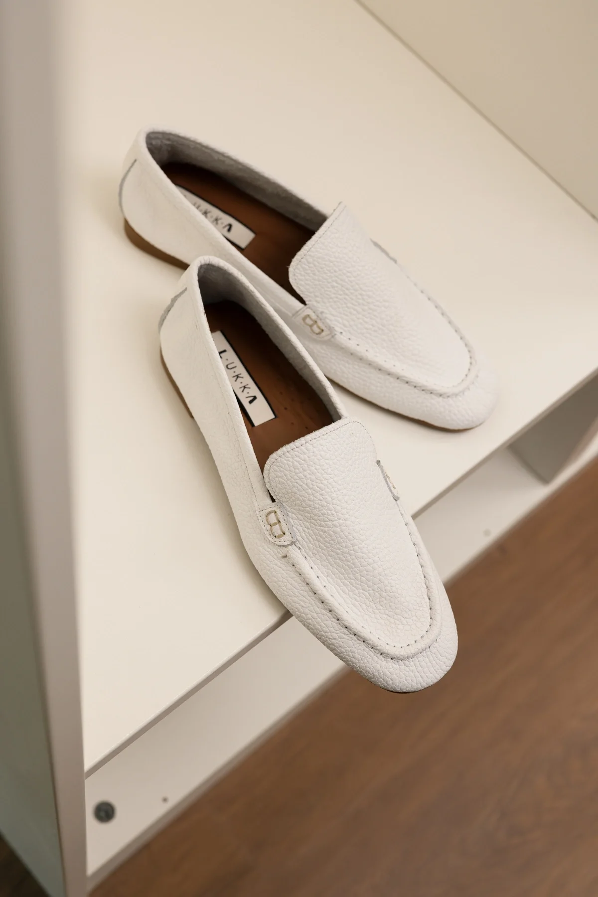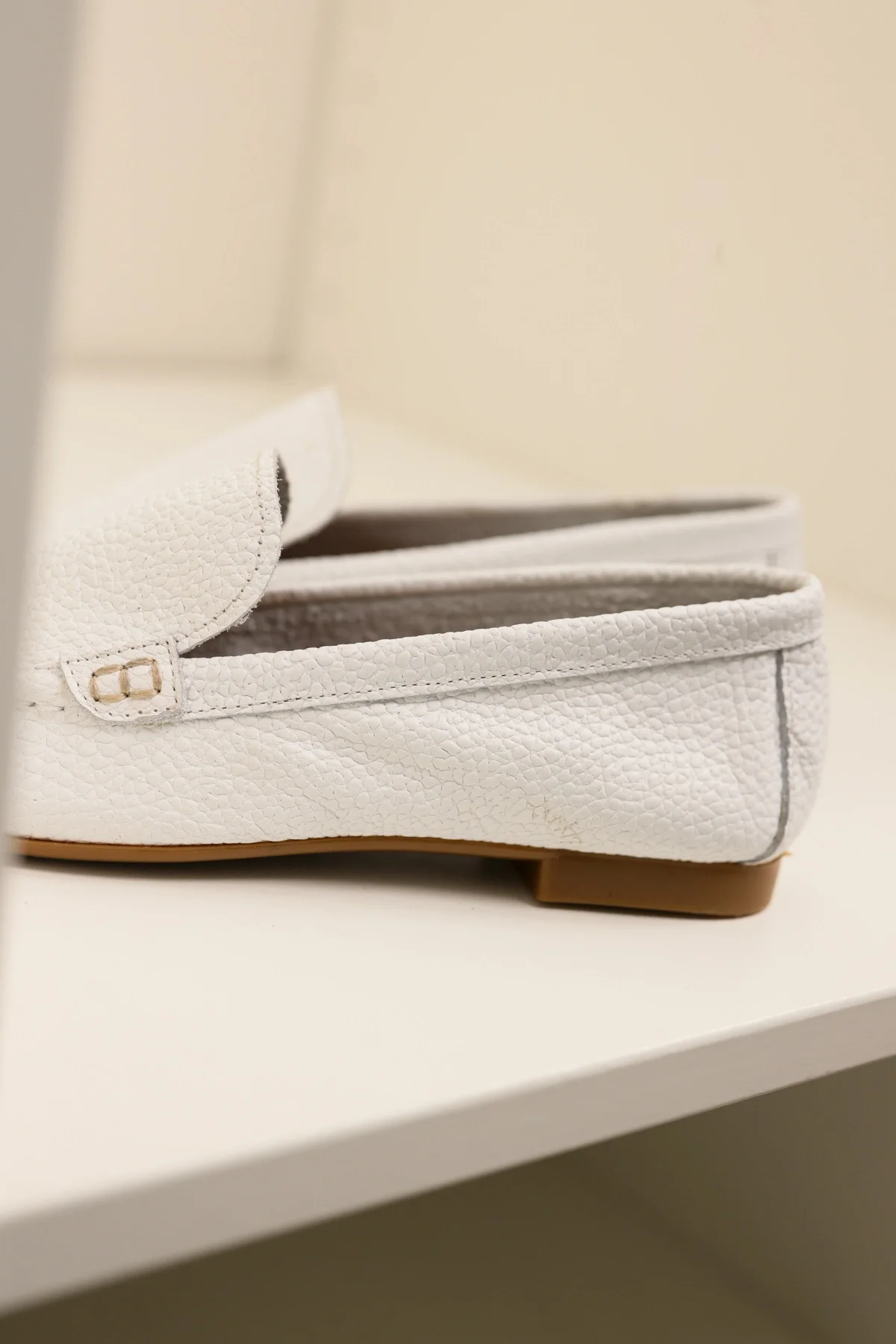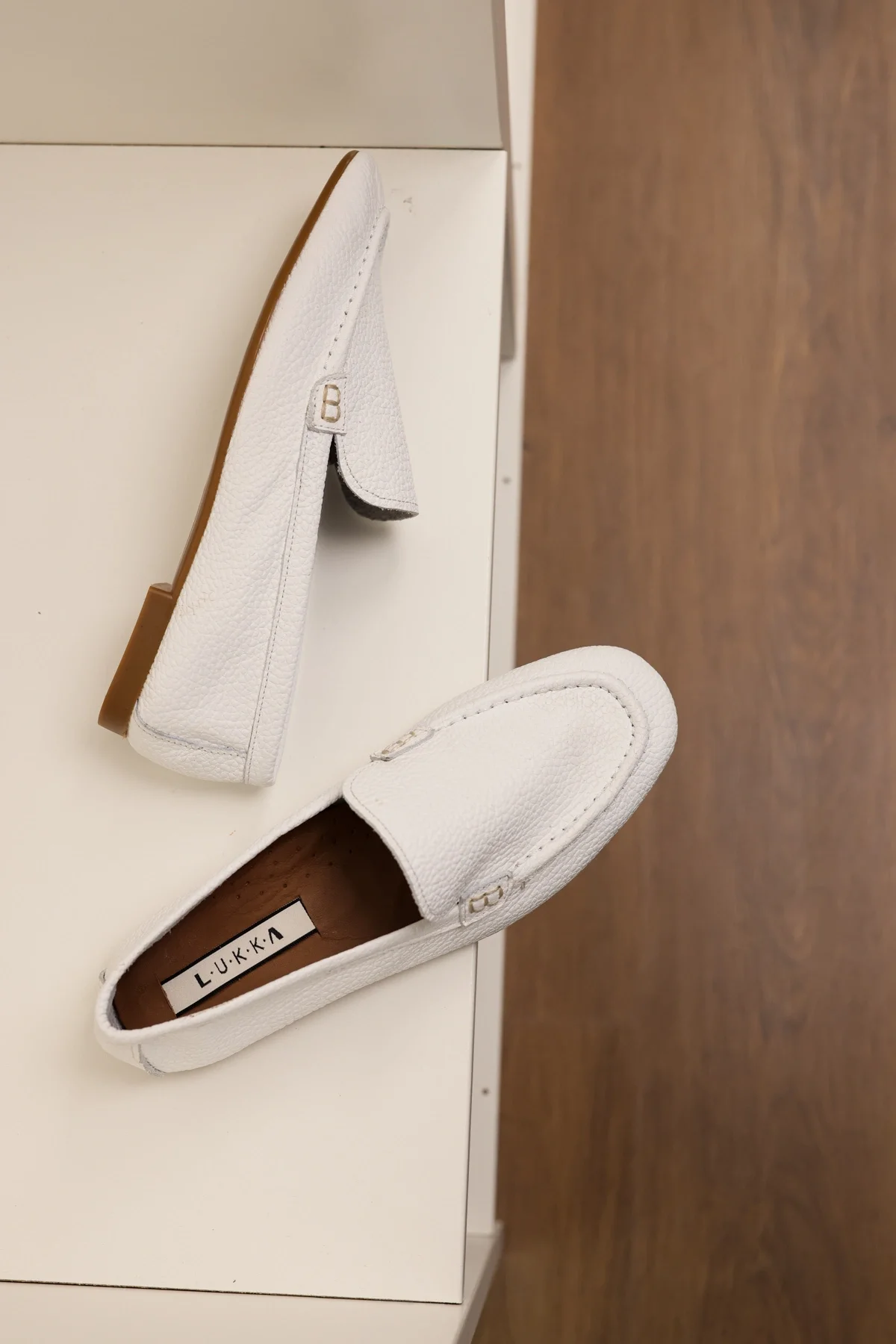 Hakiki Deri Kadın Adeen Beyaz Ponponlu El yapımı Babet
