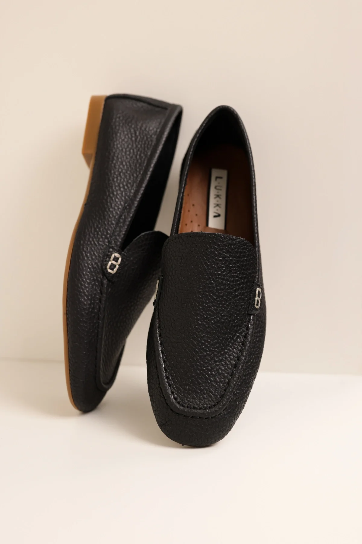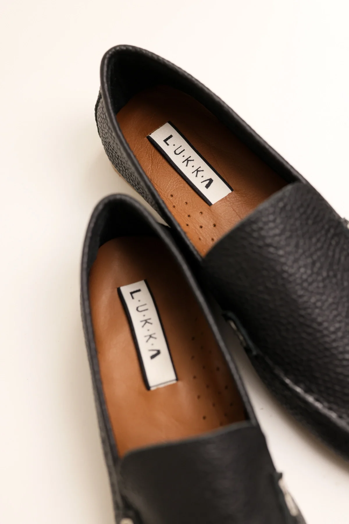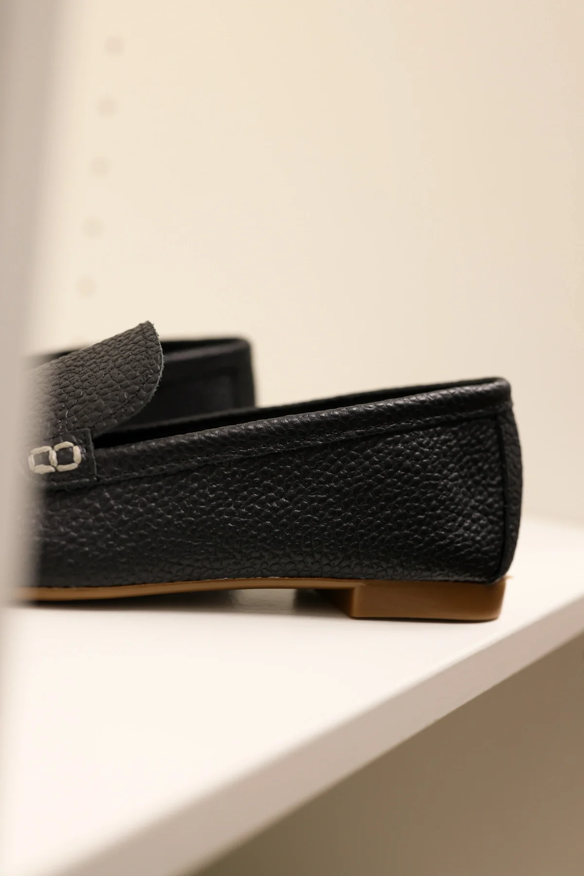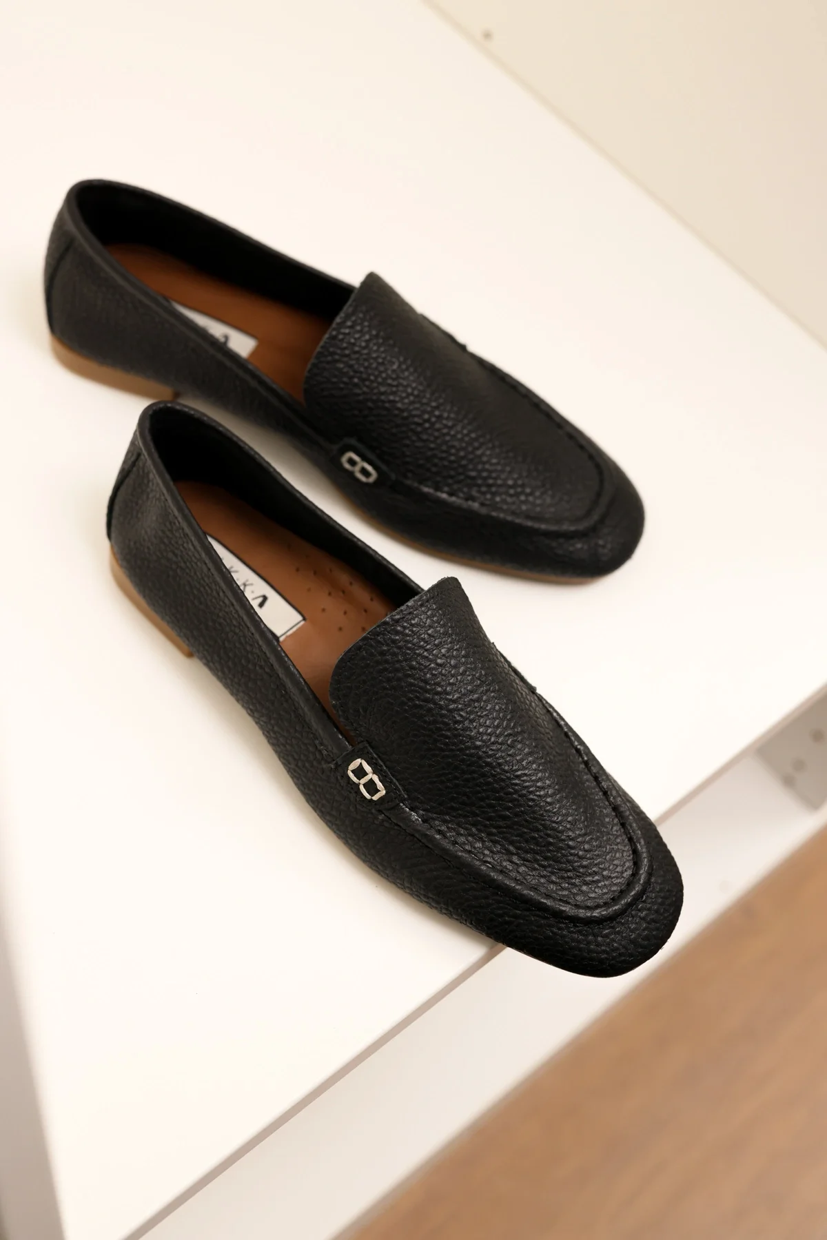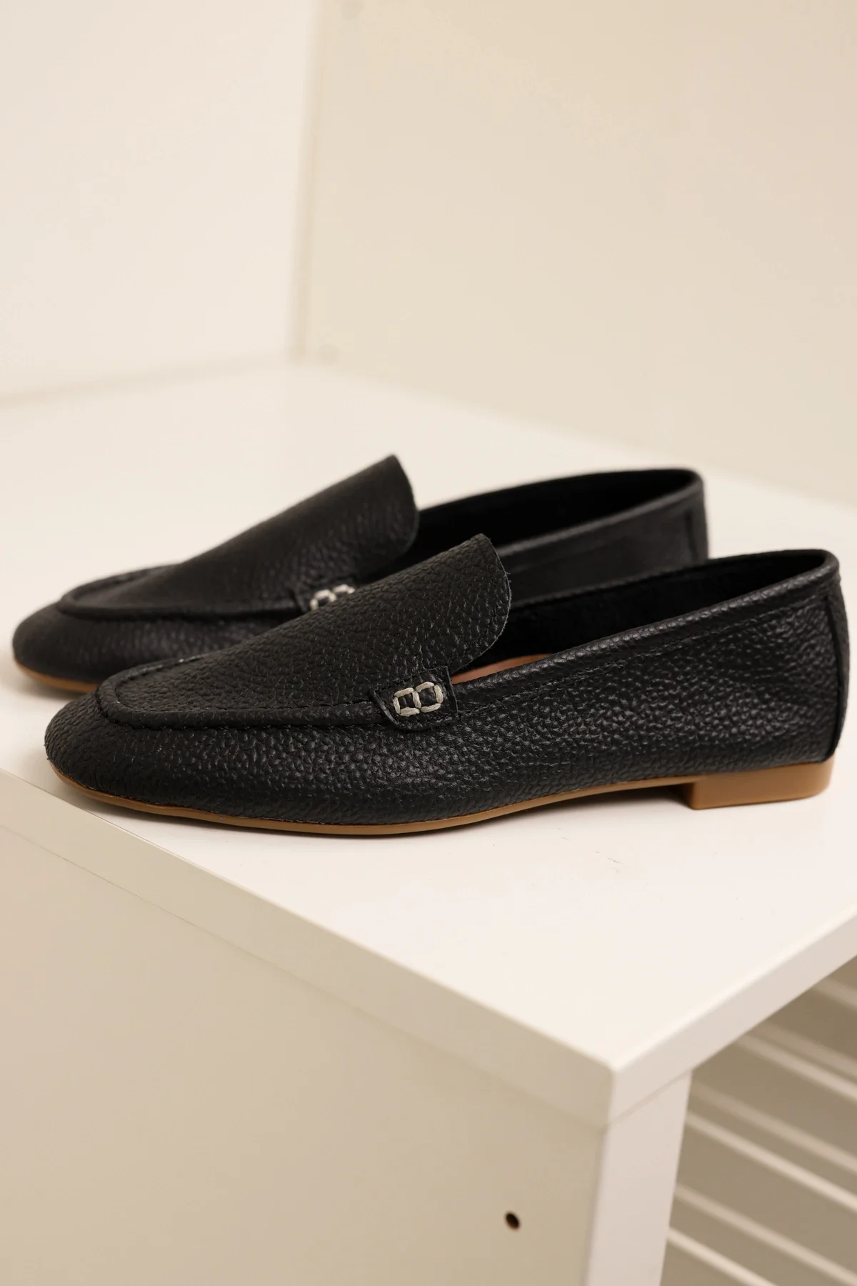 Hakiki Deri Cameron Kadın Siyah Metal Tokalı Loafer Babet