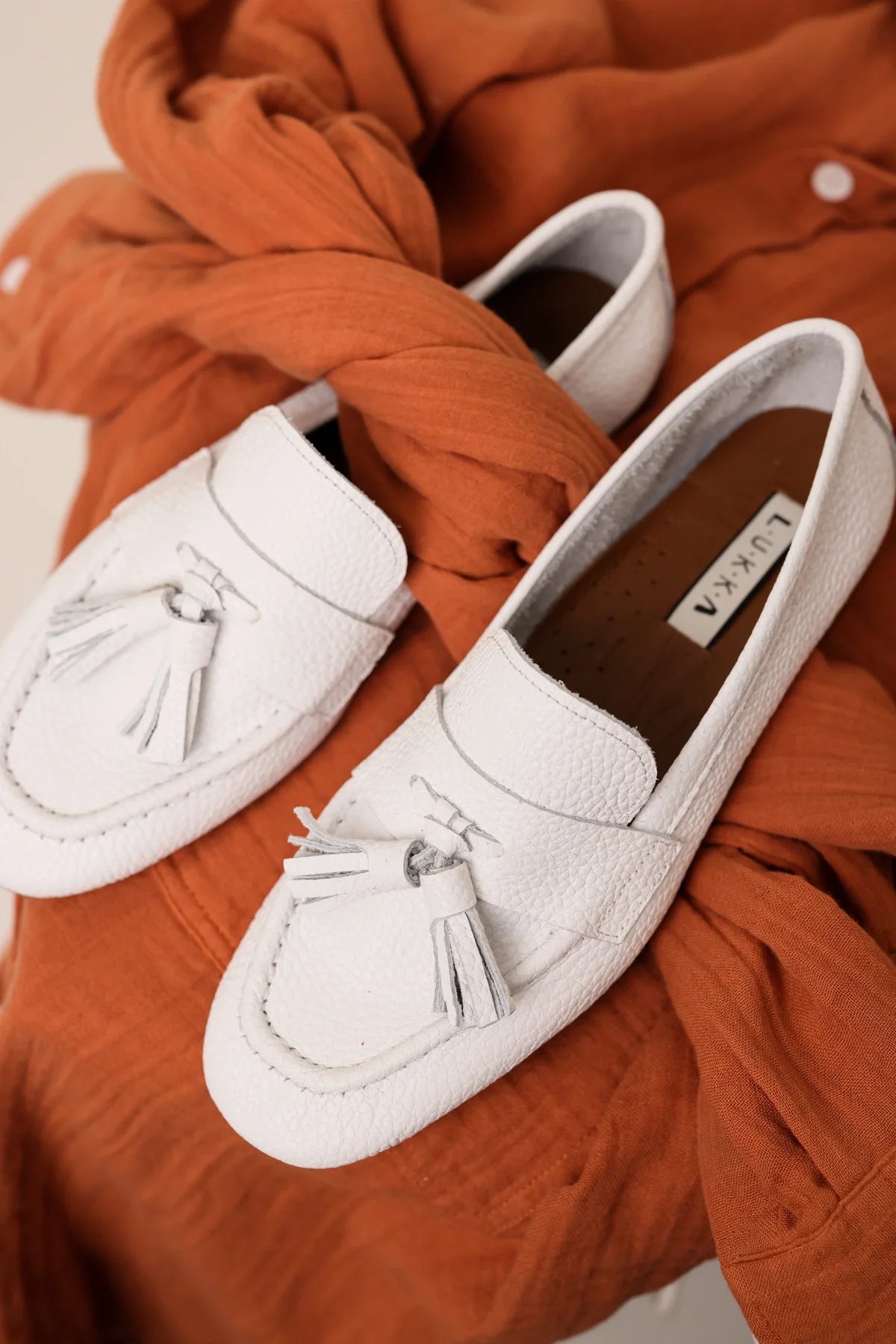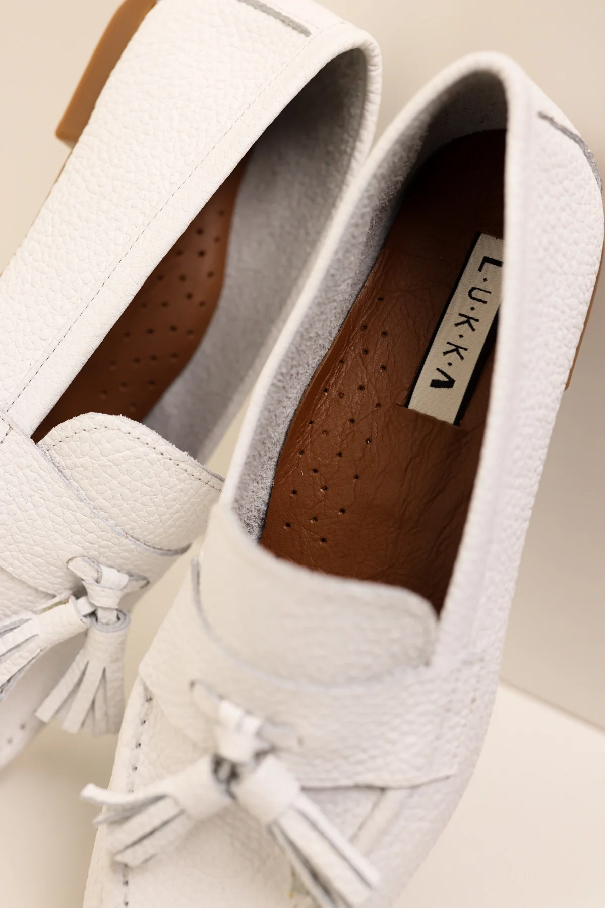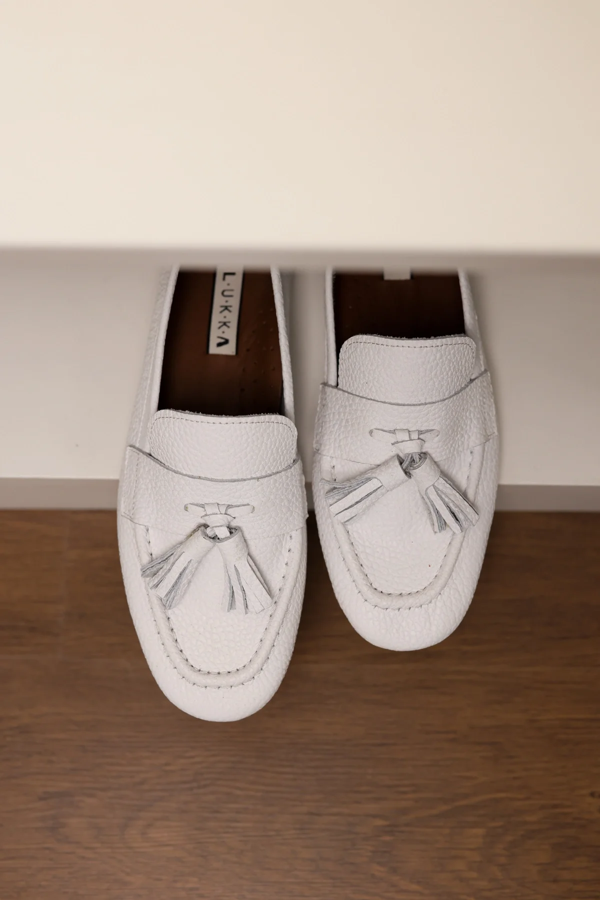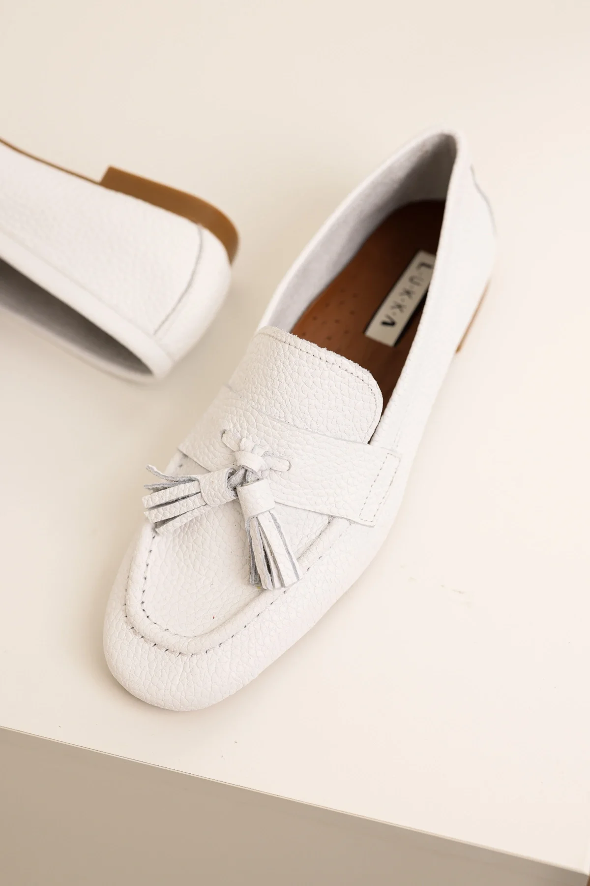 Hakiki Deri Kadın Abay Beyaz Saraçlı Babet