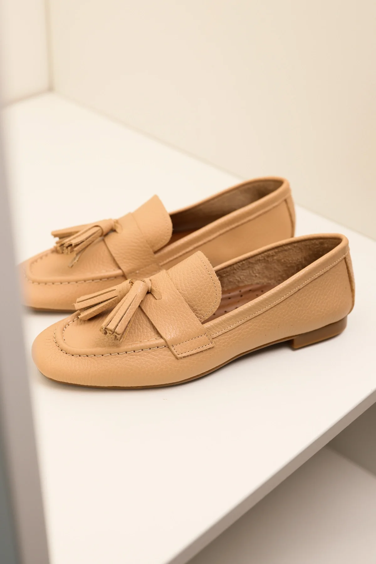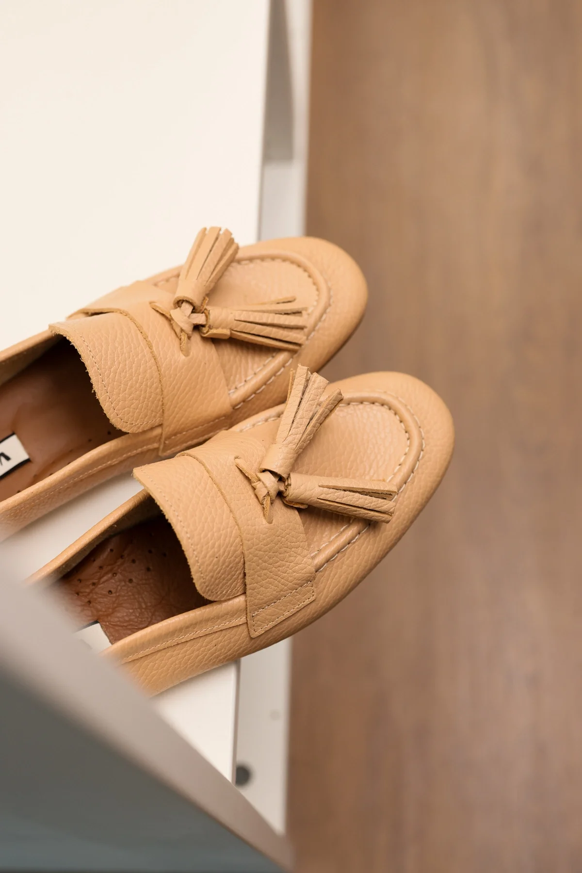 Hakiki Deri Kadın Alvin Nude El yapımı Babet