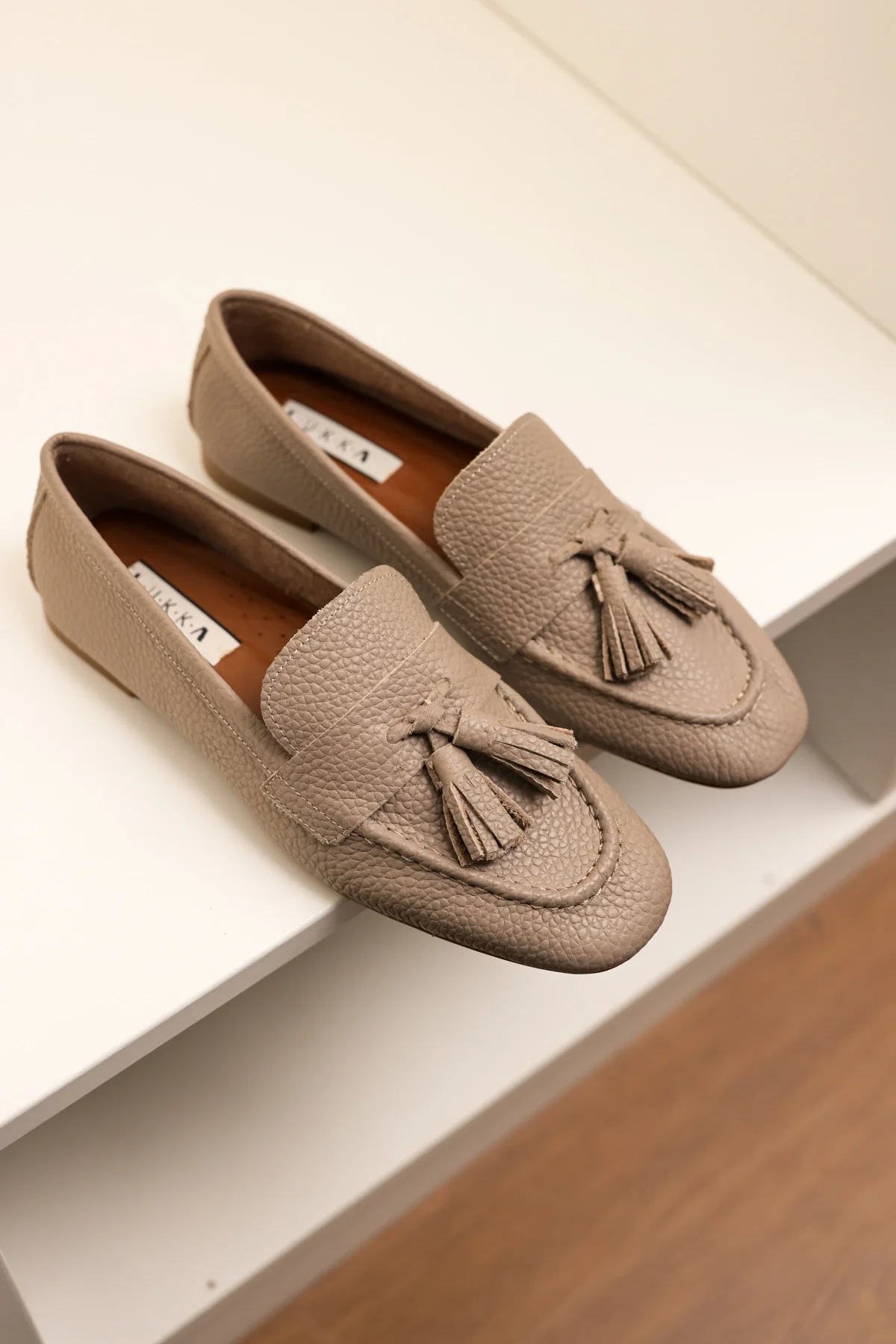 Hakiki Deri Kadın Adeen Nude Ponponlu El yapımı Babet