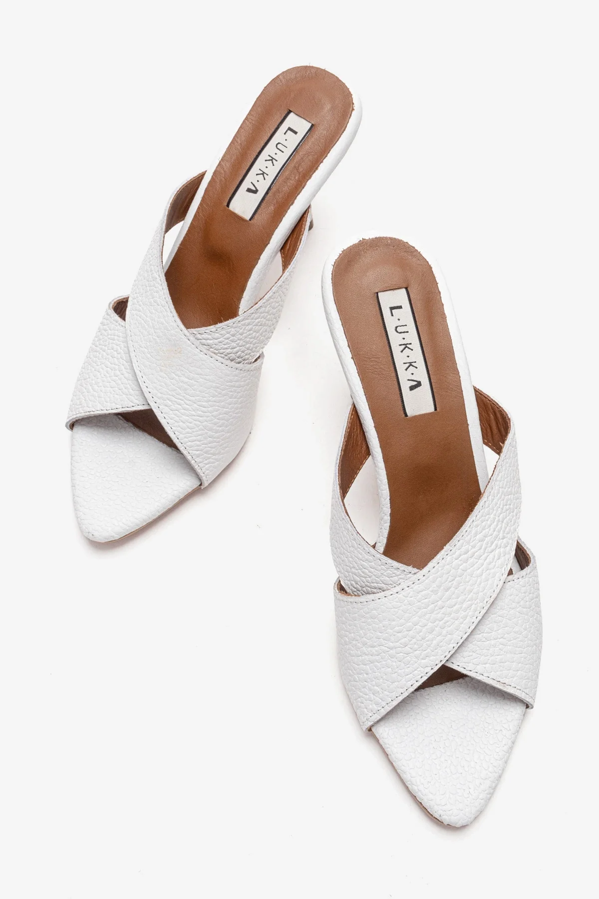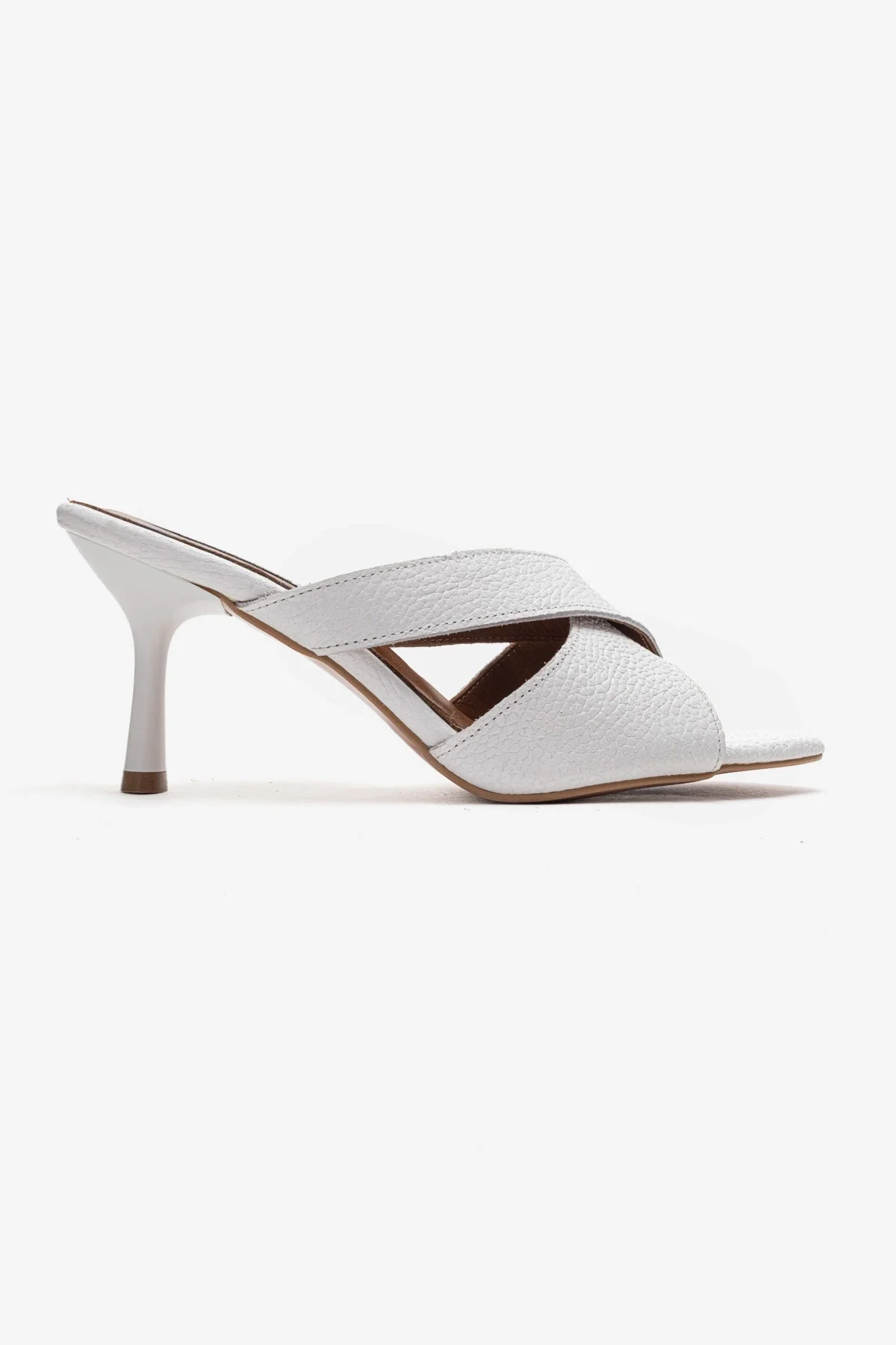 HAKİKİ DERİ MİLA KADIN BEYAZ ÇAPRAZ TOPUKLU TERLİK