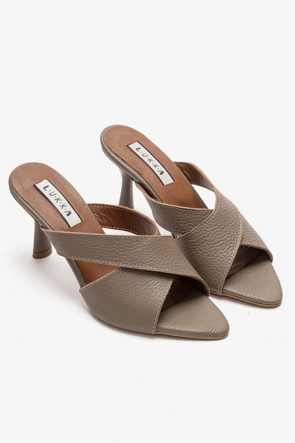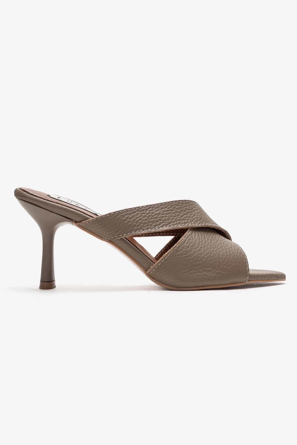 Hakiki Deri Mila Kadın Avakado Çapraz Topuklu Terlik