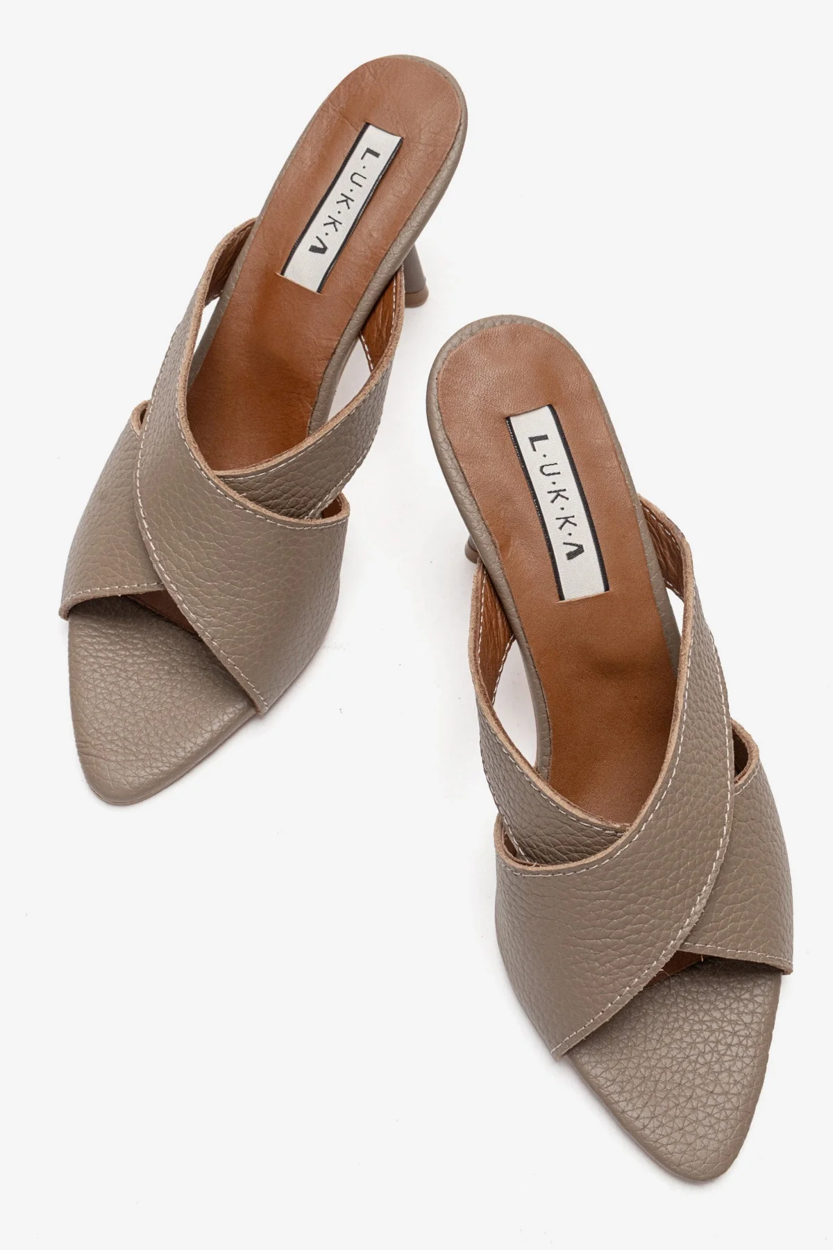 Hakiki Deri Mila Kadın Acı Kahve Çapraz Topuklu Terlik