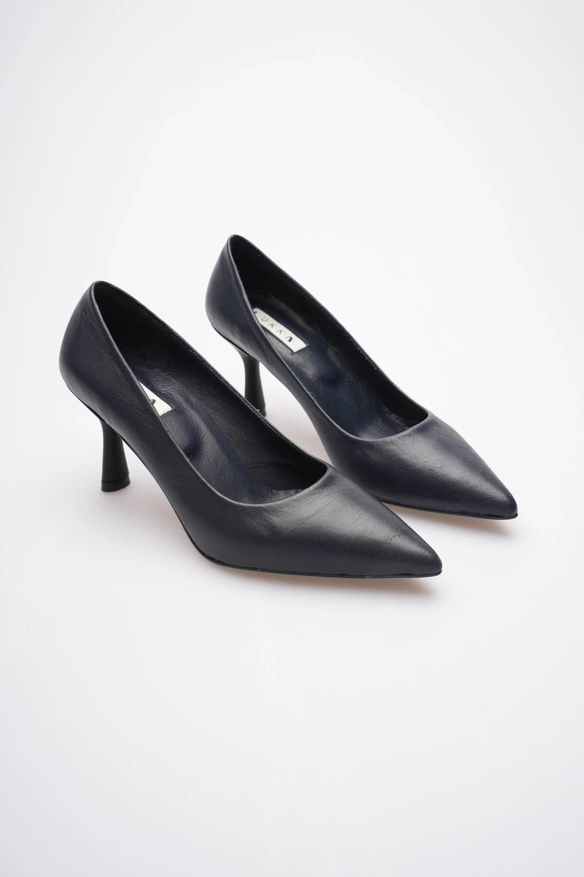 KADIN ADAL LACİVERT HAKİKİ DERİ İÇ DIŞ 11CM TOPUKLU STİLETTO