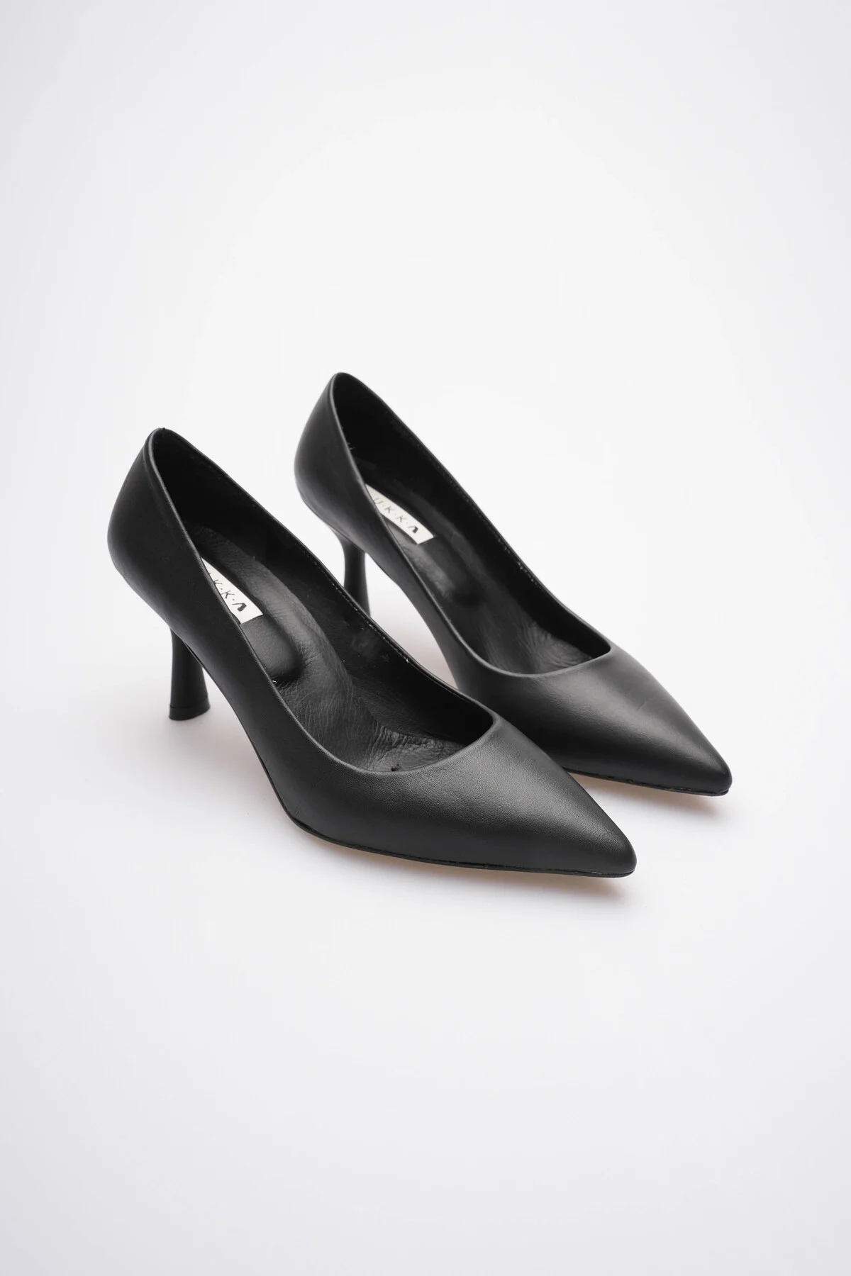 KADIN ADAL SİYAH HAKİKİ DERİ İÇ DIŞ 11CM TOPUKLU STİLETTO