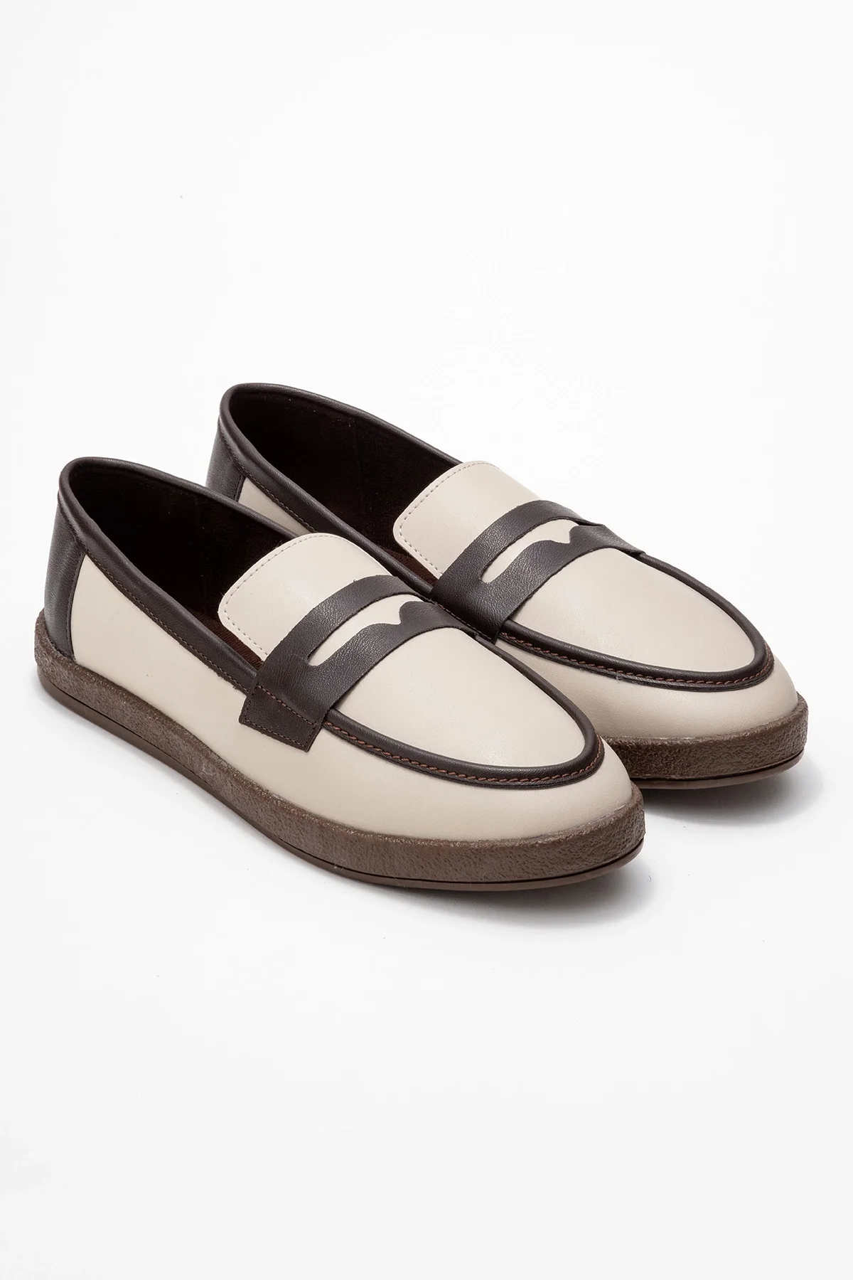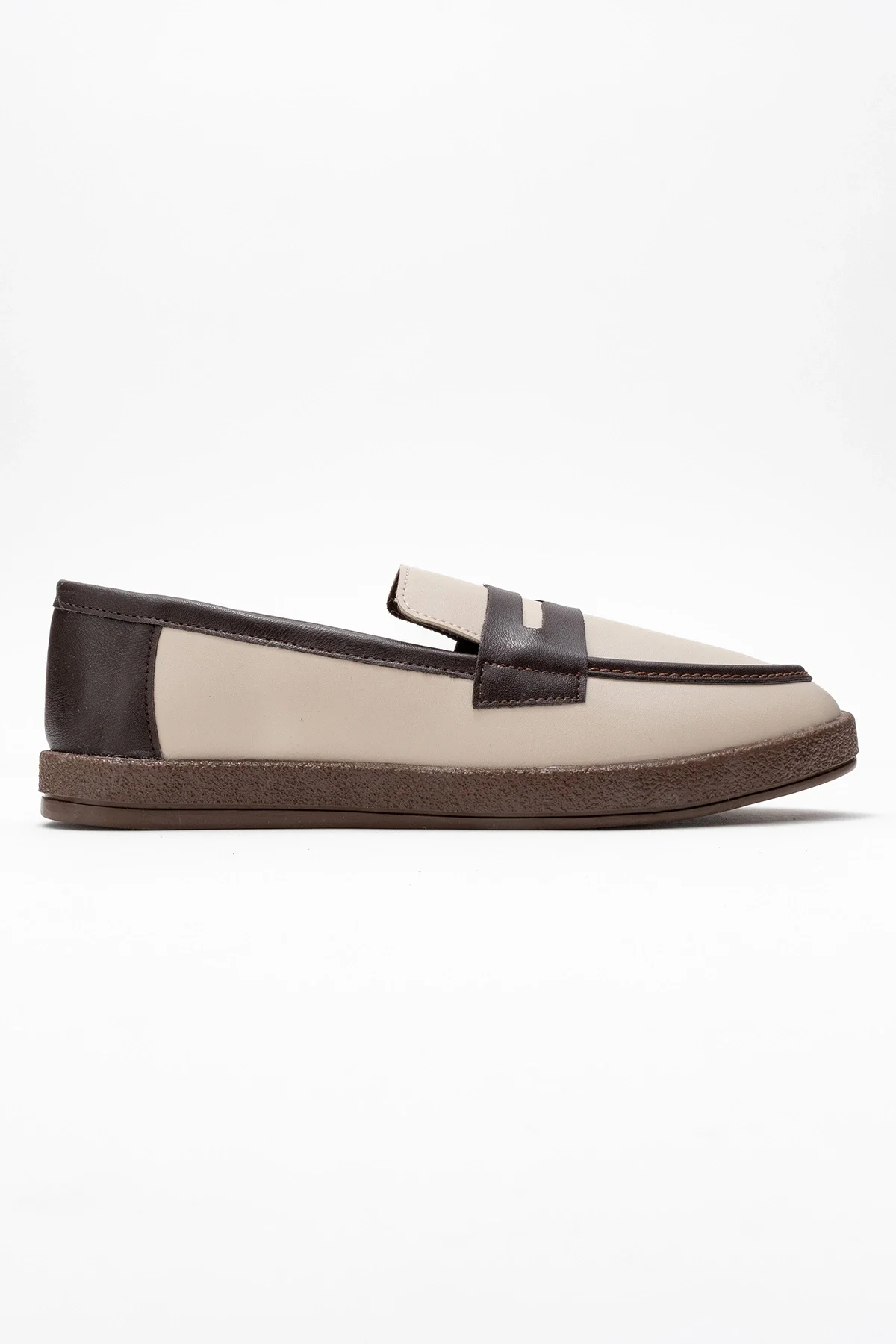LİVYA ERKEK BEJ GARNİLİ SUNİ DERİ LOAFER AYAKKABI