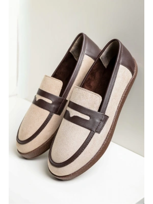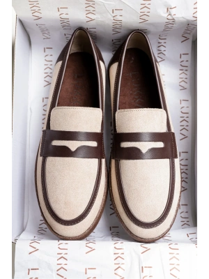 Livya Erkek Bej Süet Garnili Loafer Ayakkabı