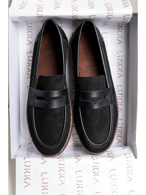 Livya Erkek Siyah Süet Garnili Loafer Ayakkabı