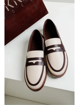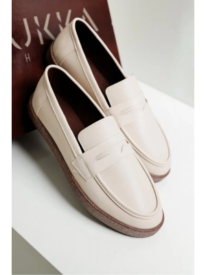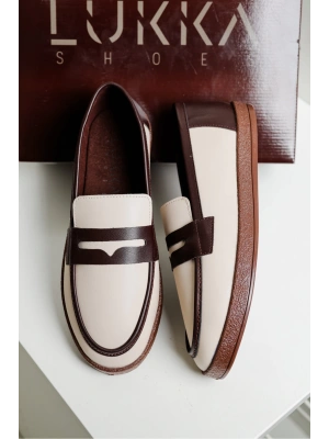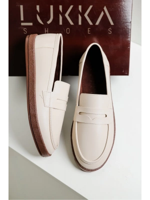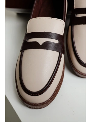 Livya Erkek Bej Garnili Suni Deri Loafer Ayakkabı