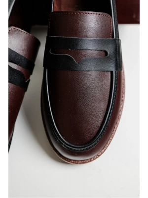 Livya Erkek Acı Kahve Garnili Suni Deri Loafer Ayakkabı