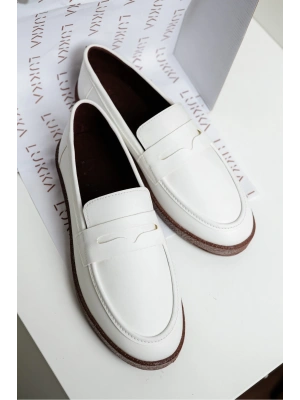 Livya Erkek Beyaz Garnili Suni Deri Loafer Ayakkabı