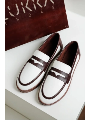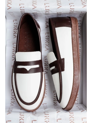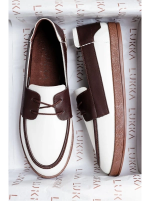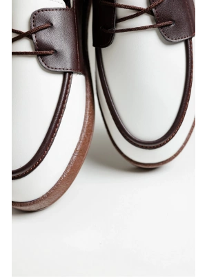 Rosa Erkek Suni Beyaz Garnili Deri Bağcıklı Loafer Günlük Casual Ayakkabı