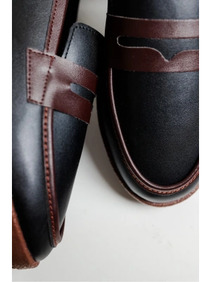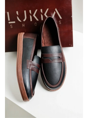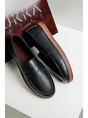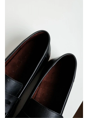 Livya Erkek Siyah Garnili Suni Deri Loafer Ayakkabı