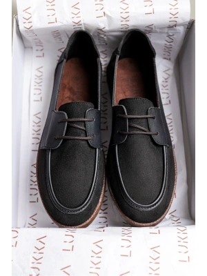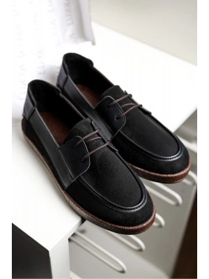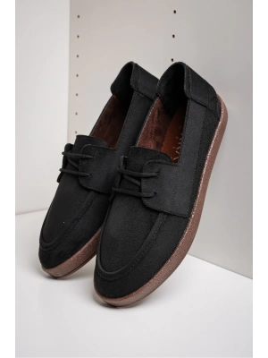 Rosa Erkek Siyah Süet Garnili Bağcıklı Loafer Günlük Casual Ayakkabı