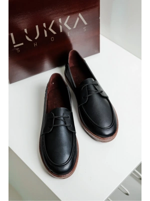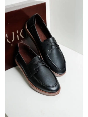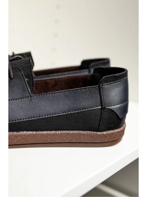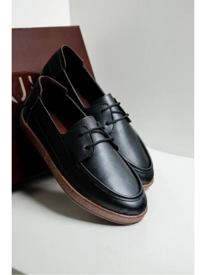 Rosa Erkek Siyah Suni Deri Bağcıklı Loafer Günlük Casual Ayakkabı