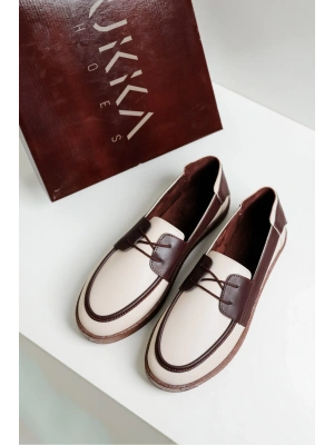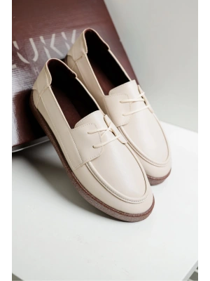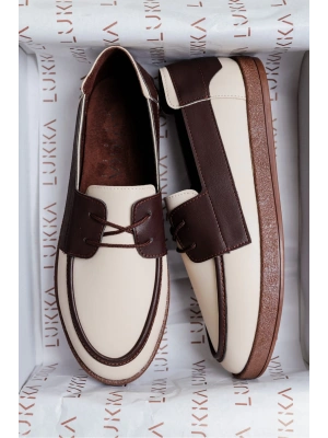 Rosa Erkek Bej Garnili Suni Deri Bağcıklı Loafer Günlük Casual Ayakkabı