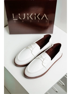 Rosa Erkek Suni Beyaz Deri Bağcıklı Loafer Günlük Casual Ayakkabı