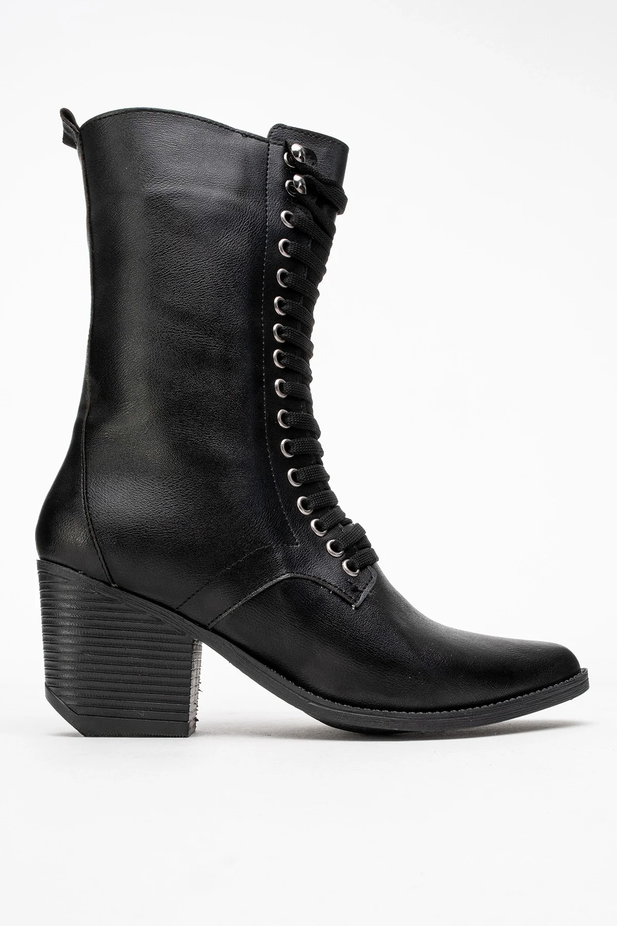 Dina Kadın Siyah Suni Deri Topuklu Bot