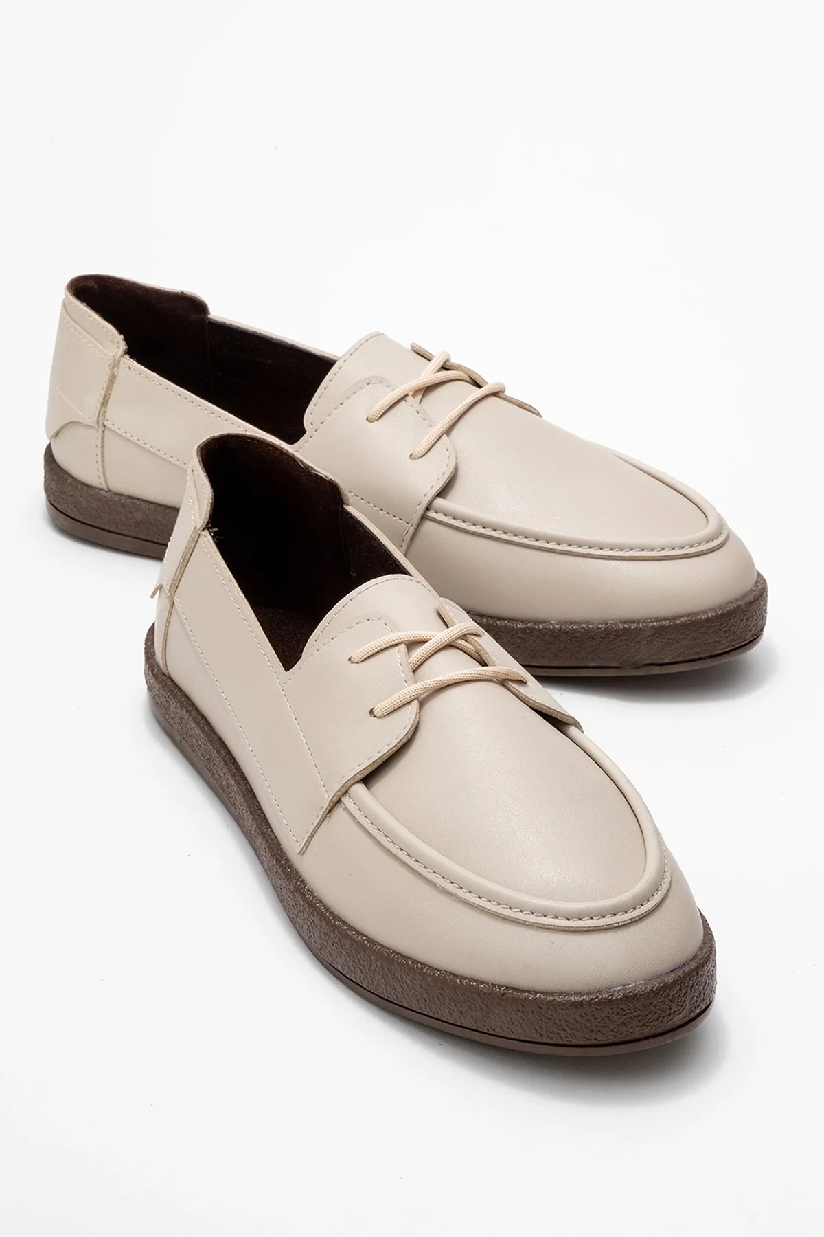 Rosa Erkek Bej Garnili Suni Deri Bağcıklı Loafer Günlük Casual Ayakkabı