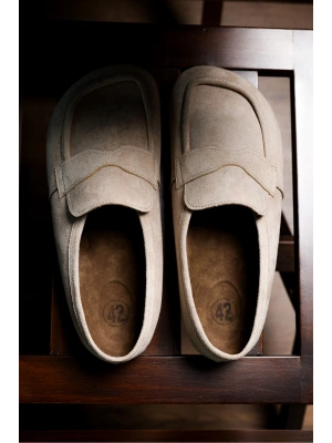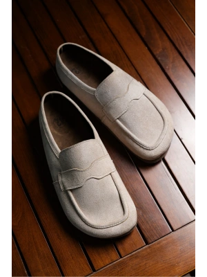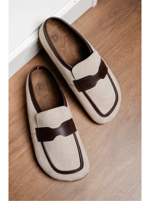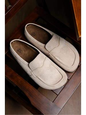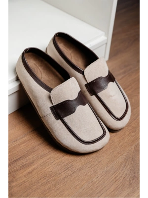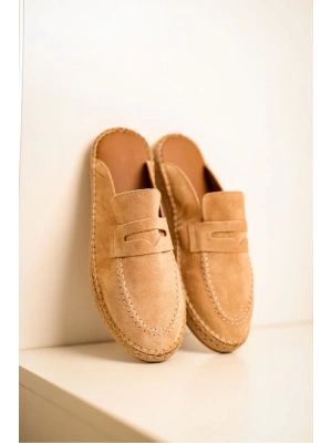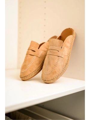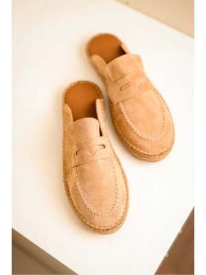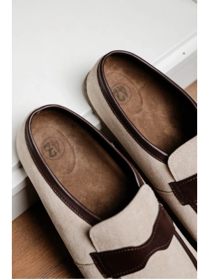 London Erkek Bej Süet Loafer Sabo Loafer Terlik Ayakkabı