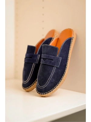 Bloom Hakiki Deri Lacivert Kauçuk taban terlik