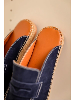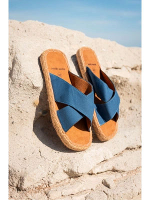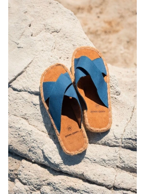 Zeta Mavi Çapraz Keten Erkek Terlik