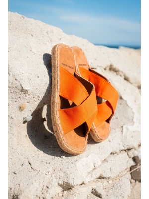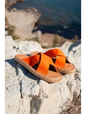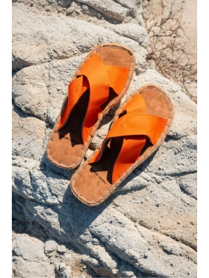 Zeta Oranj Çapraz Keten Erkek Terlik