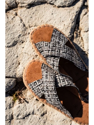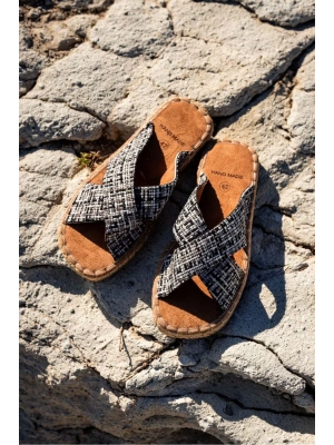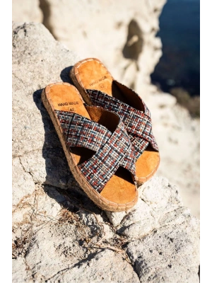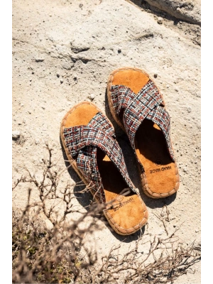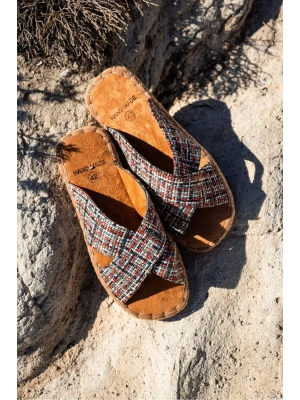 Zeta Erkek Renkli 2 Kumaş Çapraz Keten Terlik