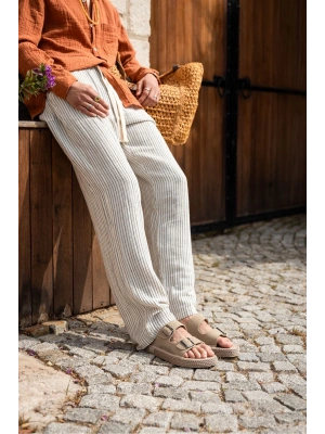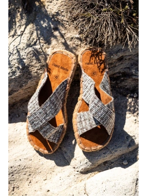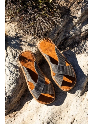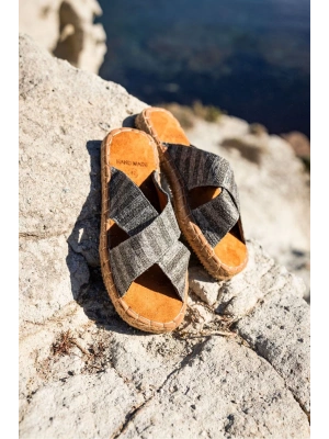 Zeta Gri Çizgili Çapraz Keten Erkek Terlik