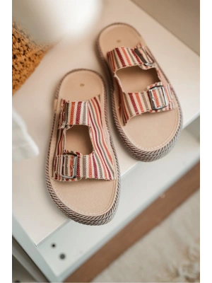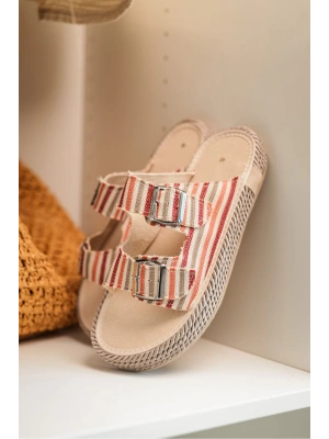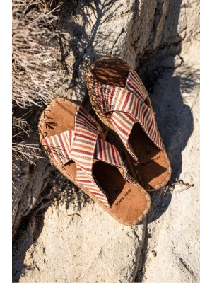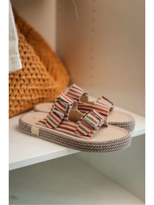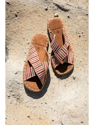Zeta Kırmızı Çizgili Çapraz Keten Erkek Terlik
