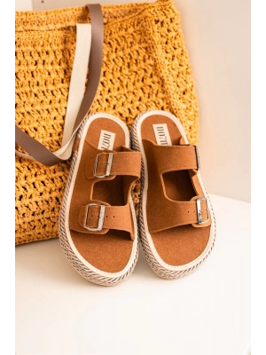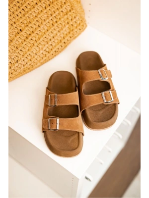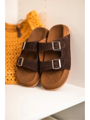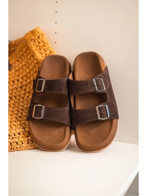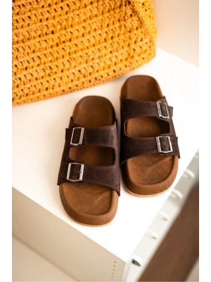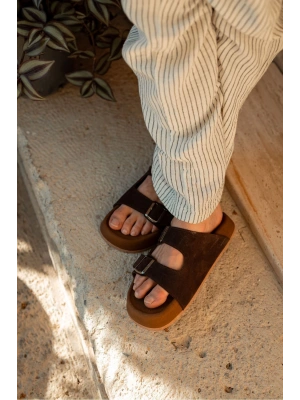 Lorenzo Acı Kahve Çift Tokalı Hafif Mantar Taban Erkek Terlik