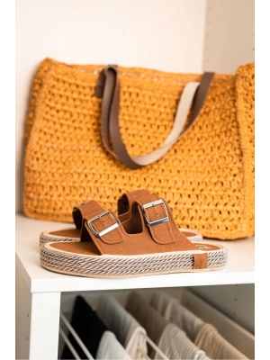 Francesco Taba Çift Tokalı El Yapımı Natural Hasır Erkek Terlik