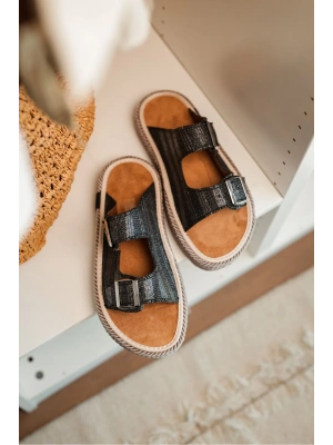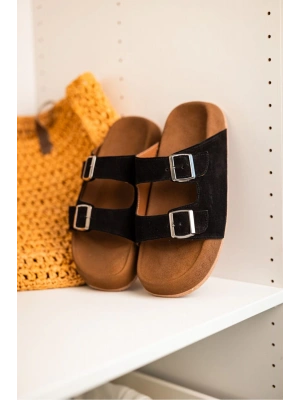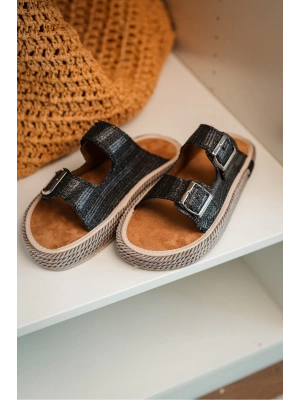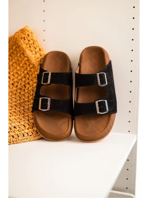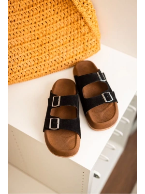 Lorenzo Siyah Çift Tokalı Hafif Mantar Taban Erkek Terlik