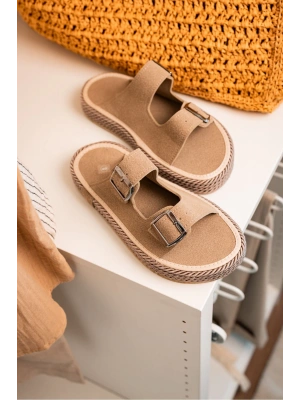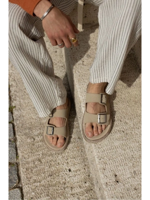 Bloom Hakiki Deri Bej Kauçuk taban terlik