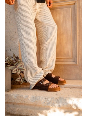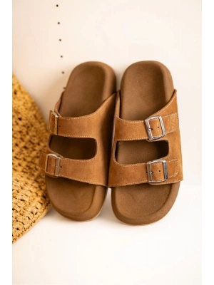 Lorenzo Taba Çift Tokalı Hafif Mantar Taban Erkek Terlik